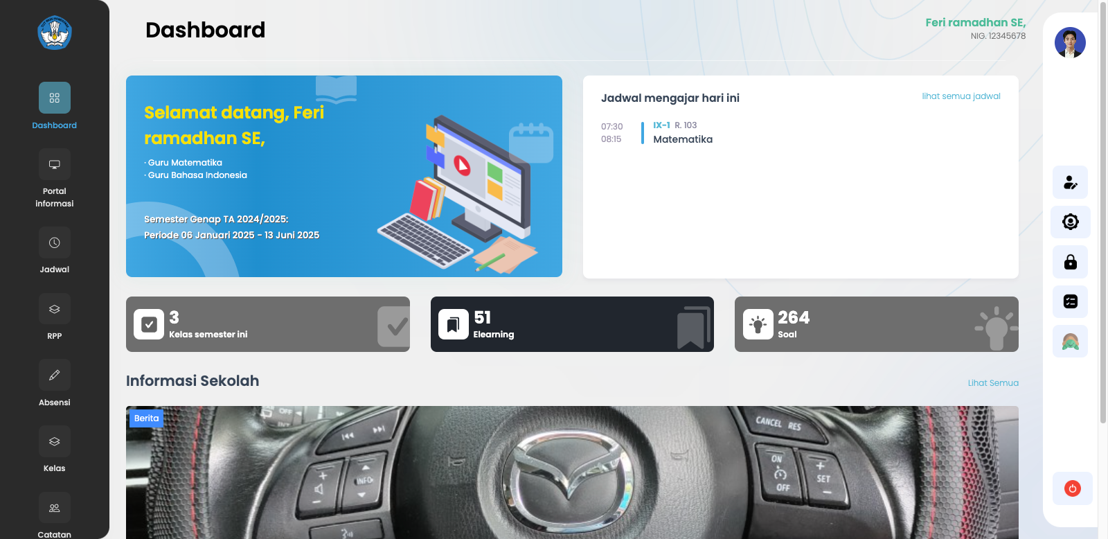 Bebagai fitur dalam meudahkan guru seperti meninput nilai, mengabsensi, membuat rencana pembelajar serta mengoreksi tuga dan ujian