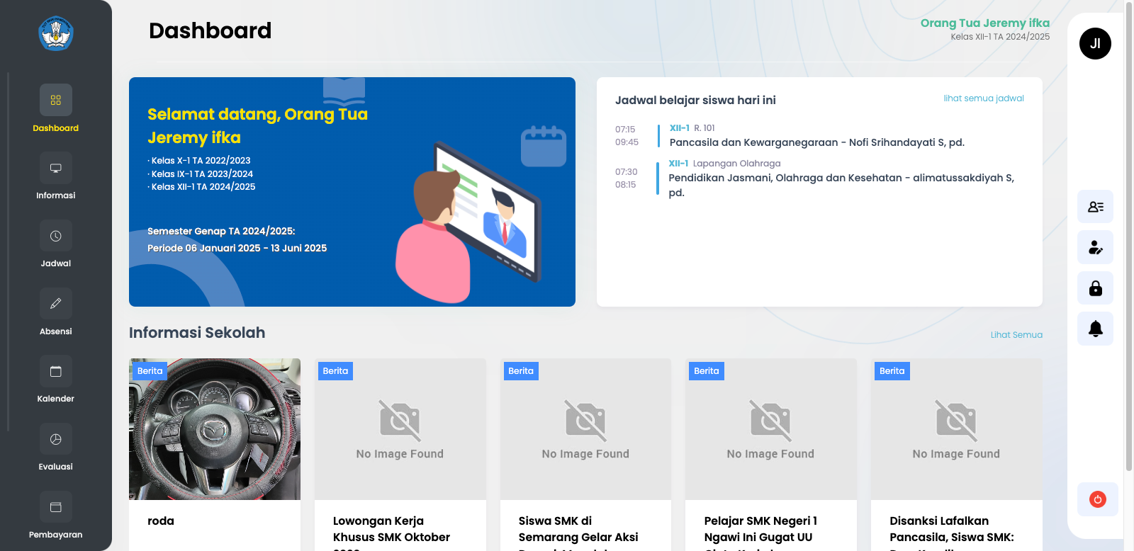 Orang tua bisa memantau anaknya dalam belajar, absen dan pembayaran sekolah. orang tua juga bisa berinteraksi dengan sekolah dengan mudah