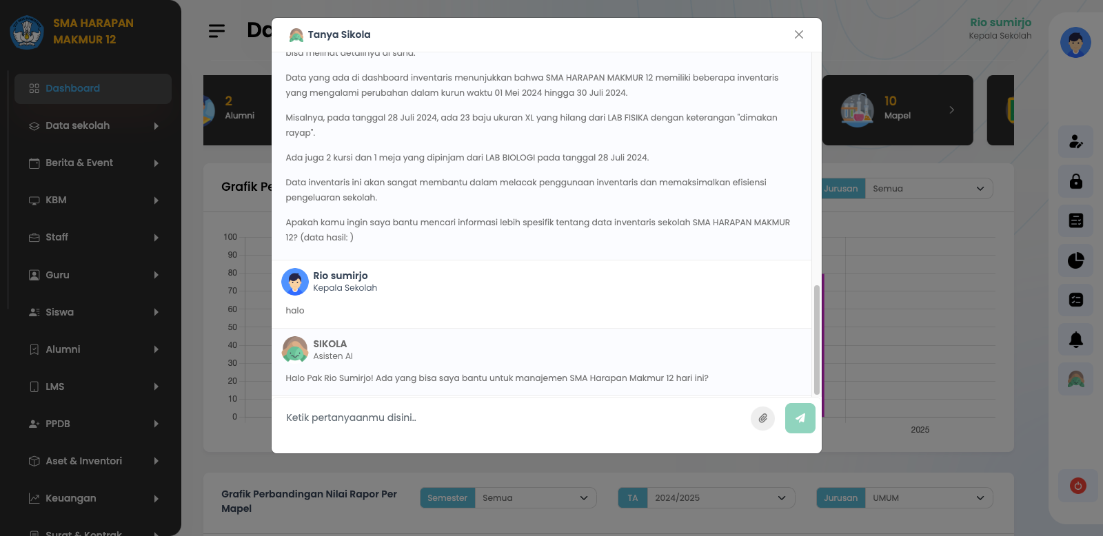 Asisten AI Interaktif membantu guru dan staff sekolah dalam menjawab pertanyaan, memberikan rekomendasi, dan mengelola administrasi dengan lebih cepat dan efisien.