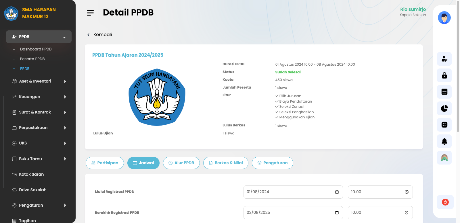 Kepala sekolah alan mudah dalam mengevaluasi kinerja sekolahnya dan membantu memberi rujukan data untuk menganalisa dan memberikan keputusan yang tepat dalam mengembangkan sekolahnya